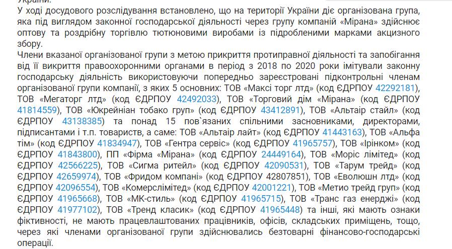 Например, "Эрика ЛТД" фигурировала в деле касательно незаконного производства сигарет и их легализации без уплаты акциза. Теневой рынок сигарет растет с каждым годом, а его ушлые участники очень быстро превращаются в миллионеров.