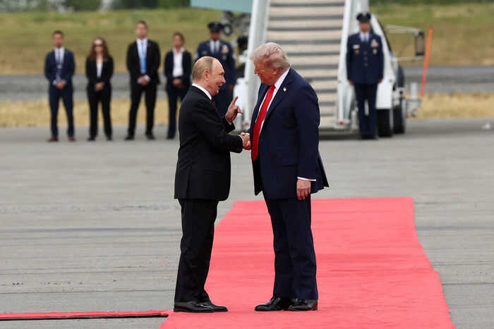 Истребители F-35 и стратегический бомбардировщик В-2 летали в небе над Анкориджем во время встречи Путина и Трампа.