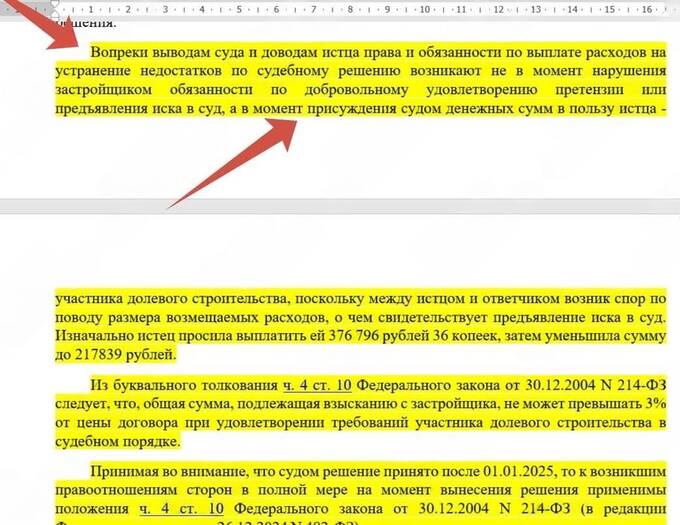 Таким образом, даже если человек купил квартиру по ДДУ в 2023году, а с иском о взыскании денежных средств на устранение недостатков застройщика обратился в 2024 году, до внесенных изменений в 214 закон, человеку будет присуждена денежная сумма не более 3% от цены договора.