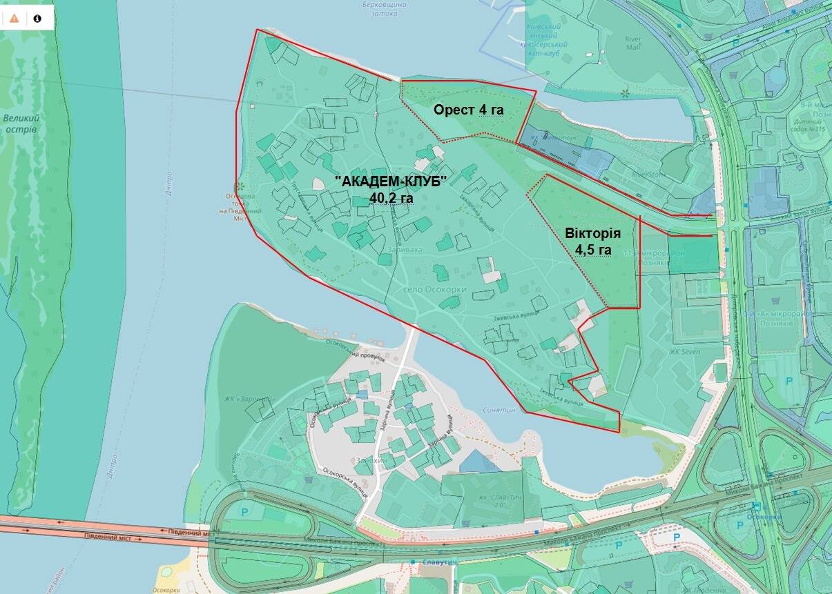 «Речь идет о полуострове между станциями метро «Славутич» и «Осокорки», территория 11 микорайона жилого массива «Позняки-Западные (село Осокорки), а именно два участка: 24,51 га кадастровый номер № 8000000000:90:90 15,74 га кадастровый номер № 8000000000:90:010:0169. В 2019 году Никитася обокрали его партнеры-подчиненные: [нынешний заместитель руководителя ОП Олег Татаров] и [бенефициар ООО Северо-Украинский строительный альянс Андрей] Якусевич… ООО Академ-Клуб у них позже откупили: 50% Столар (через VІЕМАR НОЛДИНГ LТD), 50% Медведчук (через РИLАWЕR ЛИМИТЕD)», — написал блоггер.