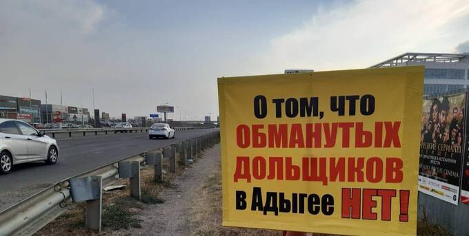 В Майкопе троих обманутых дольщиков, купивших квартиры в ЖСК «У Меги» и оставшихся без жилья после банкротства застройщика, задержали во время одиночных пикетов. На их плакатах было обращение к главе республики Мурату Кумпилову, которого они обвинили во лжи президенту о том, что в Адыгее нет обманутых дольщиков.