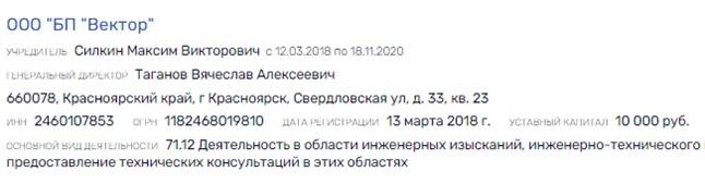А помимо этого активно занимался бизнесом. С 2018 по 2020 годы он выступал совладельцем примечательной компании ООО "Бюро проектов "Вектор". Примечательна она, в первую очередь, тем, что обласкана местным красноярским госзаказом. Общий портфель компании сегодня составляет свыше 47 млн рублей. Основной заказчик - Управление дорог и благоустройства Красноярска.