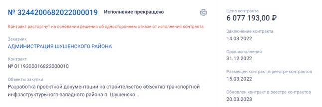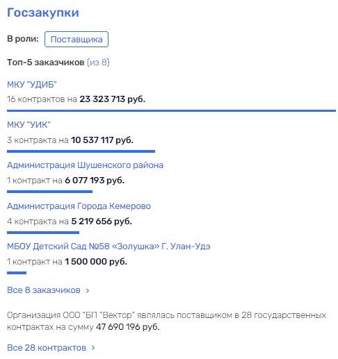 Однако не менее интересно и то, что исполнение нескольких госконтрактов "Вектором" было прекращено - в 2019 и 2022 году. Причем в 2022 году контракт на 6 млн рублей был расторгнут по вине подрядчика - "Вектор" просрочил выполнение своих обязательств, а то, что исполнил, было выполнено ненадлежащим образом.
