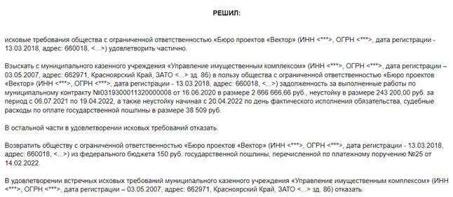 Суть дела в том, что работы, выполненные в 2020 году, должны быть в том же году и оплачены. Но Вектор не выполнил полный объем в 2020 году - якобы, из-за бюрократических проволочек, что расписано в судебном решении. В результате суд удовлетворил иск частично.