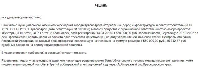 Оказалось, что фирма, которая сорвала один из госконтрактов, посчитала, что по другим ей еще и недоплатили. Кто-то назовет это удивительной наглостью, но суды встали на сторону "Вектора". Например, в деле № А33-19355/2021 "Вектор" пожаловался, что заказчик (Управление имущественным комплексом) отказался производить оплату со ссылкой на неисполнение лимитов по работам в 2020 году.