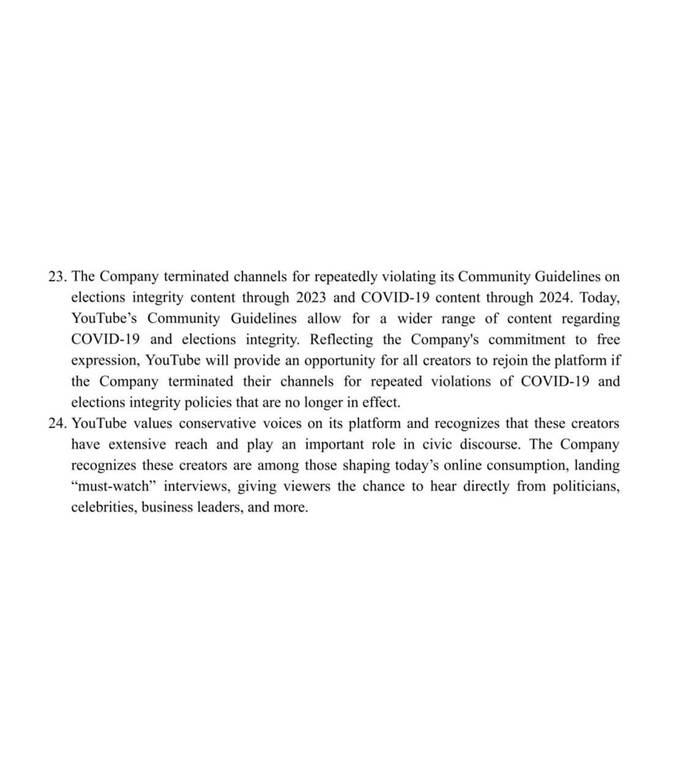 YouTube заявляет, что "ценит консервативные голоса на своей платформе и признаёт, что эти авторы обладают значительным охватом и играют важную роль в общественной дискуссии".