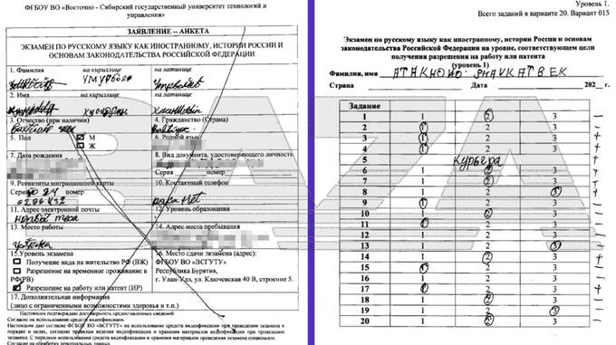 В Бурятии полиция приступила к проверке Восточно-Сибирского государственного университета, который подозревается в выдаче иностранцам поддельных сертификатов о знании русского языка. На фото результаты проведённых тестов.