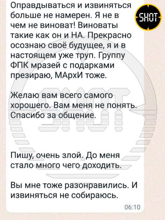 Владимир Г. обиделся и нашёл курсы в другом вузе. А преподавателям из МАРХИ отправил сообщение с угрозой, подкреплённое снимком пистолета. Абитуриент пообещал "большие проблемы", добавив, что тюрьмы не боится. К счастью, до криминала не дошло, но теперь несостоявшегося архитектора ищет полиция. Вместо успешной карьеры ему грозит срок по статье "Угроза убийством".
