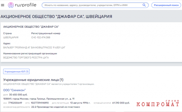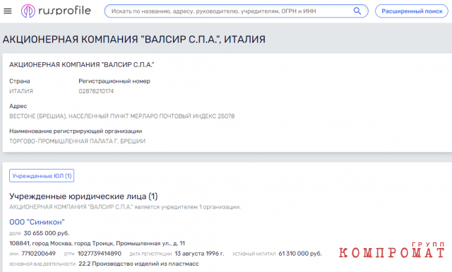 Казалось бы, благое дело – помочь отечественному производителю, к тому же, согласно информации на сайте предприятия, «занимающему лидирующие позиции в России по производству и продаже продукции для канализационных систем». Вот только московские чиновники предпочли умолчать о том, что владельцами зарегистрированного в Троицке ООО «Синикон» являются две иностранные компании – итальянская «ВАЛСИР С.П.А.» и швейцарская «ДЖАФАР СА» (до октября 2019 года в число учредителей входила также «К2 БЕЛЛЕ-МАРЕ ХОЛДИНГ С.А.» из Люксембурга).