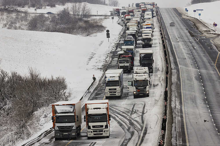 Сильный снегопад и гололёд вызвали километровые заторы на трассах Забайкалья
