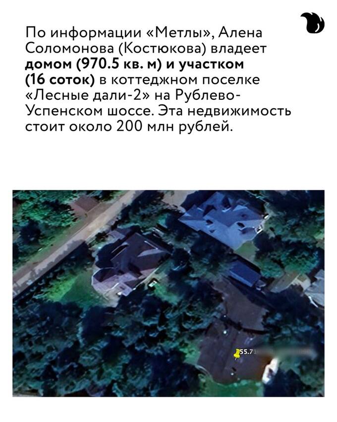 По информации «Метлы», дочь главы ГРУ владеет домом в коттеджном поселке «Лесные дали-2» стоимостью около 200 млн руб.