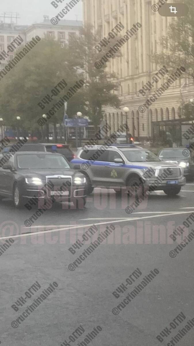 С десяток правительственных АУРСОВ (современных членовозов), несколько десятков машин охраны ФСО и полиции и прочих дорогостоящих автомобилей.