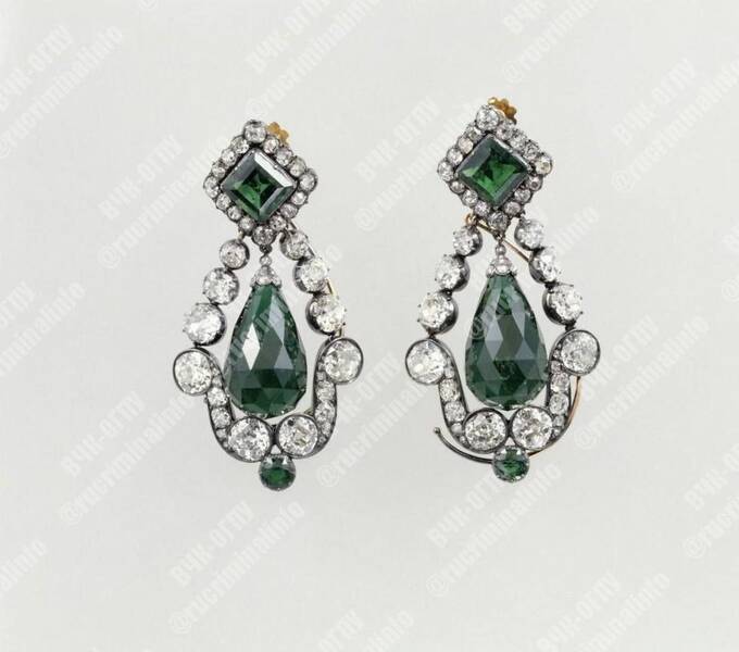- Пара серёжек с изумрудами из гарнитура Марии-Луизы.