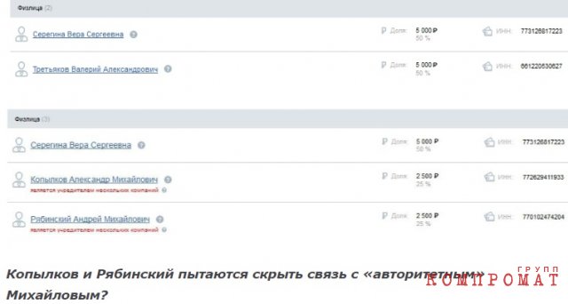 Независимой экспертной проверке также не помешало бы проверить и остальные государственные контракты фирм, связанных с Рябинским и Копылковым. Ведь они являются учредителями десятков строительных компаний. Им принадлежит ООО «СК Говорово». Фирма каким-то образом выиграла госконтрактов на 0,65 млрд. рублей.