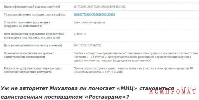 Судя по всему, руководство ФГКУ «1Цзз Войск Национальной Гвардии» может испытывать какую-то привязанность к «МИЦ». Причем речь может идти о противозаконных действиях при организации торгов.