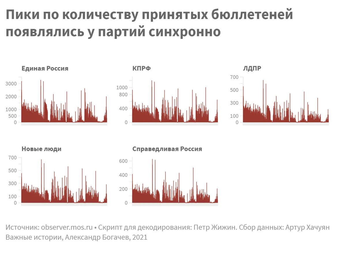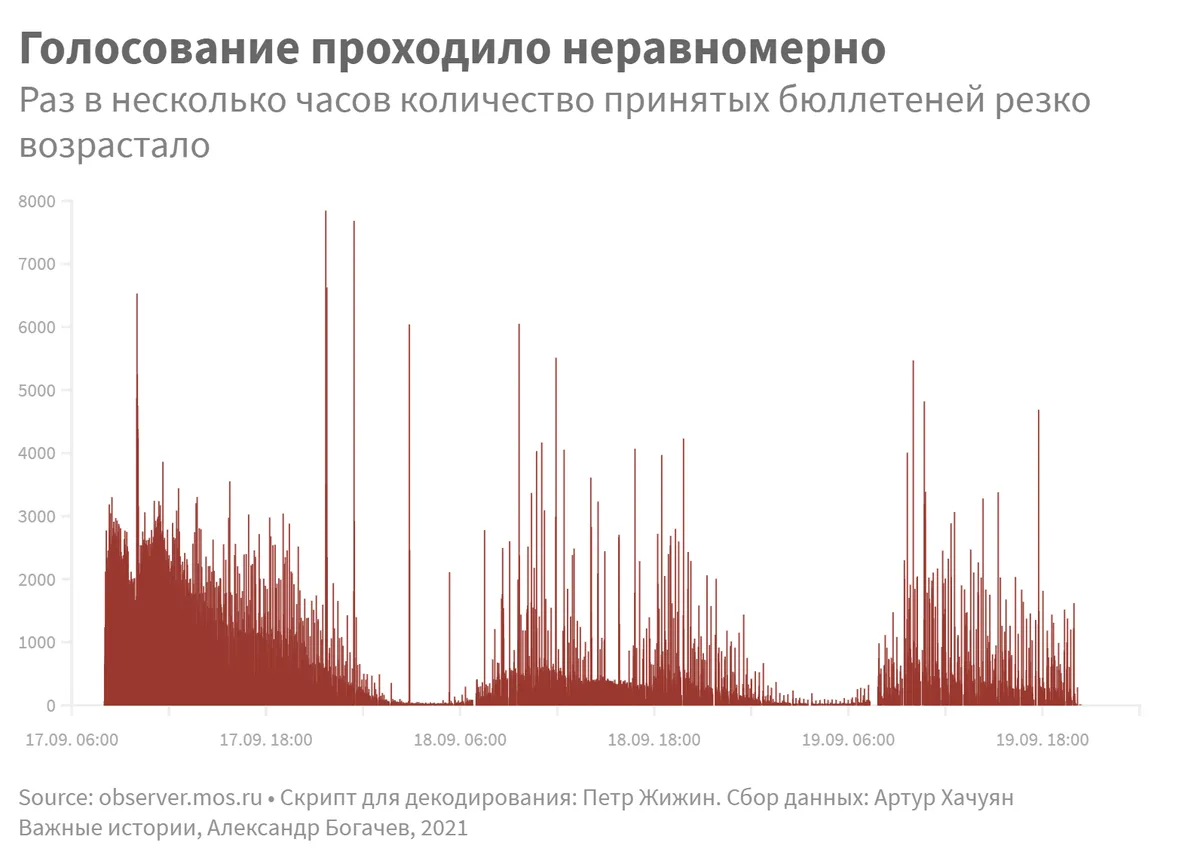 При этом в моменты пиков росло количество проголосовавших за все партии. А значит, нельзя говорить о вбросах. Но отсутствие документации и понятного алгоритма вызывает вопросы к прозрачности выборов.