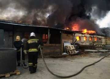 Появилось видео пожара на территории бывшей мебельной фабрики в микрорайоне Сходня подмосковных Химок