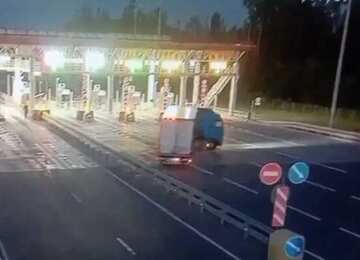На трассе М-11 под Петербургом инспектор ДПС открыл огонь по фуре Volvo, водители которой пытались вручную открыть шлагбаум у КПП, чтобы не платить за проезд на платном участке.