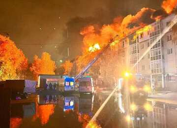 Сначала взрыв произошел в квартире на пятом этаже, после чего огонь перекинулся на кровлю. В настоящий момент площадь пожара составляет 600 метров.