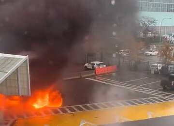 Местные СМИ пишут, что произошла детонация автомобиля. Судя по кадрам с места происшествия, взрывной волной несколько авто раскидало в разные стороны, виден пожар и густой дым.