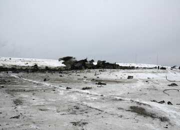 Момент крушения ИЛ-76 в Ивановской области. Перед самым падением самолёт с горящим двигателем задел деревья, из-за чего его нос резко опустило вниз и самолёт рухнул на землю.