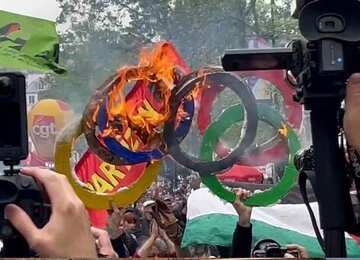 Протестующие в Париже подожгли "олимпийские кольца" в знак протеста против проведения летней Олимпиады во Франции