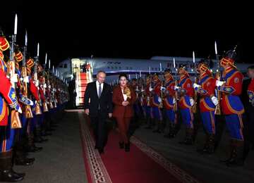 В аэропорту Улан-Батора президента встретил почетный караул.