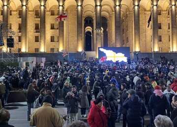 Тысячи оппозиционеров вышли на акцию протеста в центре Тбилиси.