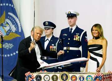 Танец с саблей от Трампа. Президент США вчера после инаугурации решил разрезать торт.