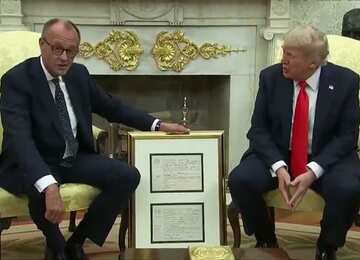 Канцлер Германии Фридрих Мерц в ходе своего визита в Вашингтон передал Трампу свидетельство о рождении его деда Фредерика Трампа.